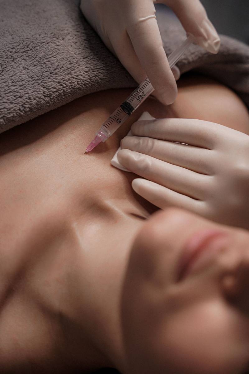 - Перерыв 2 недели (за это время исключается аллергическая реакция на компоненты препарата). Перед процедурой кожа тщательно очищается и обезжиривается. Наносится аппликационная анестезия. Шприцы опускают в воду, нагретую до определенной температуры, чтобы получить необходимую консистенцию препарата для введения в кожу. Для достижения клинически значимого результата необходимо провести курс процедур.